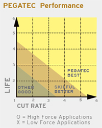 硬度为“T”的产品用于切割固体金属材料。 它具有出色的耐磨性能和额外的耐用性。 |